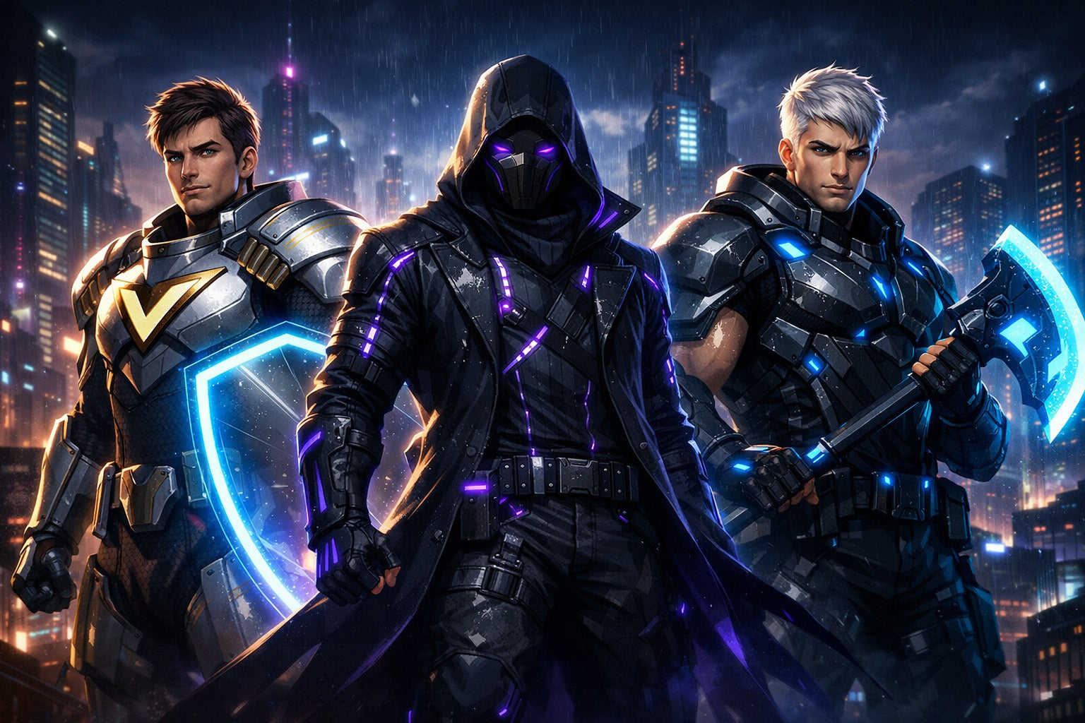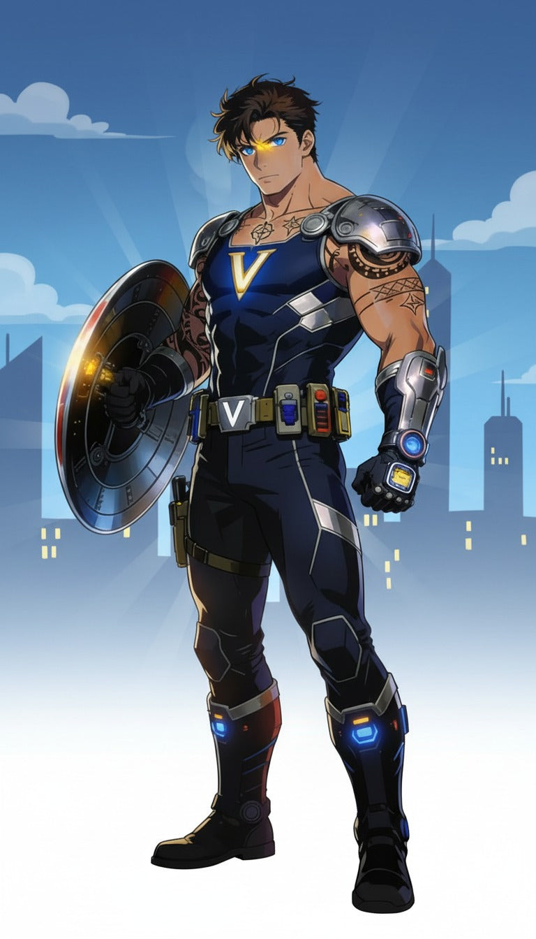 A front line defender enhanced by advanced technology. He stands as a shield for others, believing true power exists only to protect.